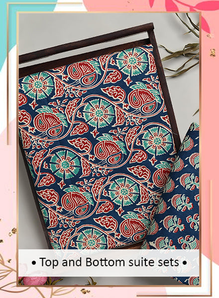 Elegant Sanganeri Printed Cotton Suit Top And Bottom Set (EATB08)
